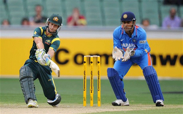 Earlier Indian Captain, MS Dhoni won the toss and opted to field first to get use of the overcast conditions. The Kangaroos started off in cautious manner and Vinay Kumar rewarded the blue shirts with two quick wickets. The hard hitting David Warner was bowled for six runs and the most experienced batsman Ricky Ponting was caught at extra cover by Suresh Raina for mere two runs.