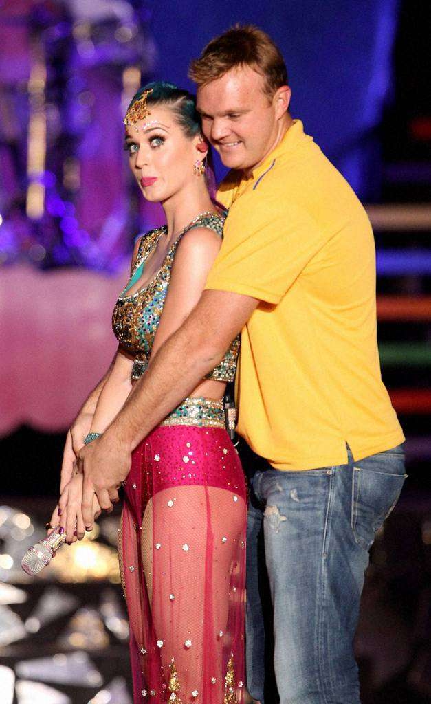 Chennai Super Kings’ player Doug Bollinger showed American singer Katy Perry how to bat during the opening night function and concert held at the YMCA College of Physical Education Grounds, Nandanam, Chennai.