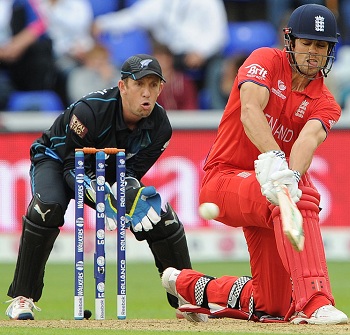 The game was restricted to 24 overs a side due to rain and England was bowled out for 169 with three balls to spare. The Kiwis managed 159 for the loss of 8 wickets in the required 24 overs.