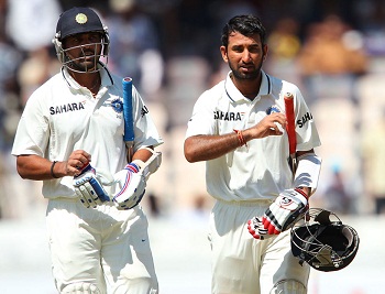 Earlier, the hosts started their innings at five without losing any wicket, Murali Vijay and Virender Sehwag were at the crease at 0 and 4 runs in 3 overs. The first wicket was lost at 17 when Sehwag was caught behind by Matthew Wade off Peter Siddle for just six runs. Cheteshwar Pujara joined in with Vijay and opened his account with a four in the 10th over. The run rate was checked by the rival bowlers but the batsmen kept on crawling without taking any risk. The lunch break was taken after 30 overs and the home side reached 54 while Vijay and Pujara were in the center with 29 and 15 accordingly.