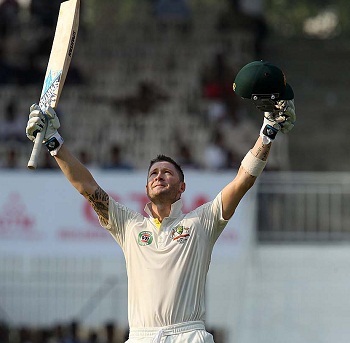 The sixth wicket association was broken at 304 on the second ball of the 90th over when Henriques was held lbw off Ashwin for 68 from 132 balls with 5 fours. Mitchell Starc was gone three runs later and was replaced by Peter Siddle. Michael Clarke blasted his 23rd Test hundred on the fifth ball of the 95th over and was applauded by the whole dressing room. Australia managed 316 runs for the loss of seven wickets at stumps on day one, Michael Clarke was unbeaten at 103 and Peter Siddle has yet to open his account.