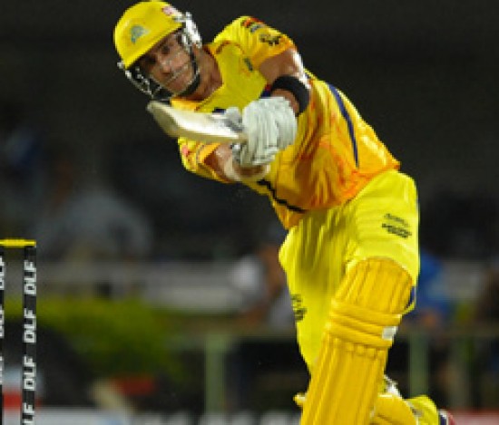 Chennai Super Kings opened up with Murali Vijay and Faf du Plessis as the latter was the more attacking of the two and sent the ball out of the ropes quite often. Du Plessis penalized Raju Bhatkal for 17 runs in the sixth over with two sixes and a four while assembling 56 runs for the first wicket in 6.5 overs. Vijay lost his wicket for 11 as Suresh Raina came in the centre and attacked the rival bowlers at will as du Plessis kept on consolidating at the other end.