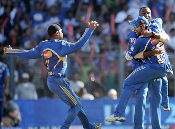 Munaf Patel and Kieron Pollard were the star performers with four wickets each and Lasith Malinga held two wickets.