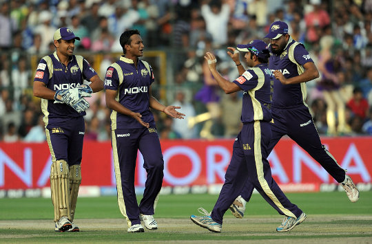 Earlier, the captain of Kolkata Knight Riders, Gautam Gambhir won the toss and came into bat with Brendon McCullum. The later started off well with a couple of fours in the first over and crawled to 21 in 4.3 overs when Gambhir lost his wicket for 10 runs. Jacques Kallis dropped in next and they kept the score board moving but the boundaries were hard to earn. Kallis was clean bowled by Michael Clarke for 13 at the total of 40 runs as the all rounder, Shakib Al Hasan joined in with McCullum.