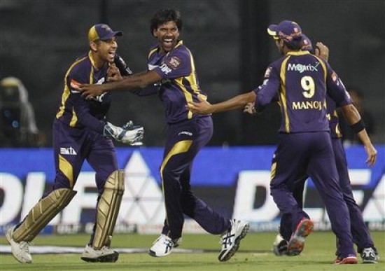 Saurabh Tiwary and the skipper Vettori, consolidated the innings as the first got two fours in the 10th over off Balaji and Tiwary got a life when he was dropped by Shakib al Hasan on the last ball of the same over for 8. Vettori gathered one six and a four in the next over but was bowled by Balaji for 20 off 12 deliveries with one six and 3 fours. Tiwary was the next batsman to be dismissed for 18 as Vinay Kumar secured the one end as the wickets were at the slide with regular intervals from the other.