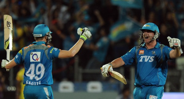 Pune Warriors 156-3 (Jesse Ryder 73*, Steven Smith 44*, Yo Mahesh 1-22) beat Chennai Super Kings 155-5 (Ravindra Jadeja 44, Faf du Plessis 34, Rahul Sharma 2-16) by 7 wickets.