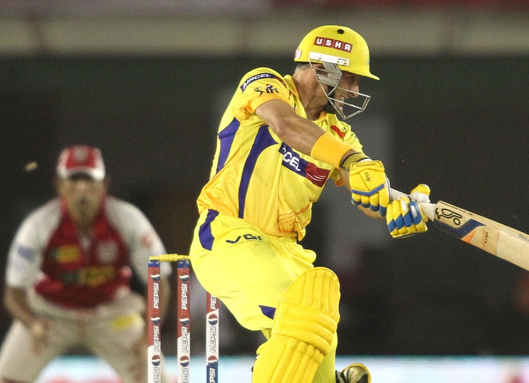 Michael Hussey and Murali Vijay started off well for Chennai Super Kings as the initial five overs resulted in 31 runs comprising 3 fours from the first and one from the latter. Hussey got a life at 25 when he was dropped by the bowler Piyush Chawla at his own bowling in the eighth over. The batsman utilised the chance by accumulating 11 runs in the next over with the assistance of 2 fours whereas Vijay kept on cruising at his end. The pair added another 3 fours in the 13th over, Michael Hussey also completed his fifty and the score went past the hundred runs mark in the 15th one.
