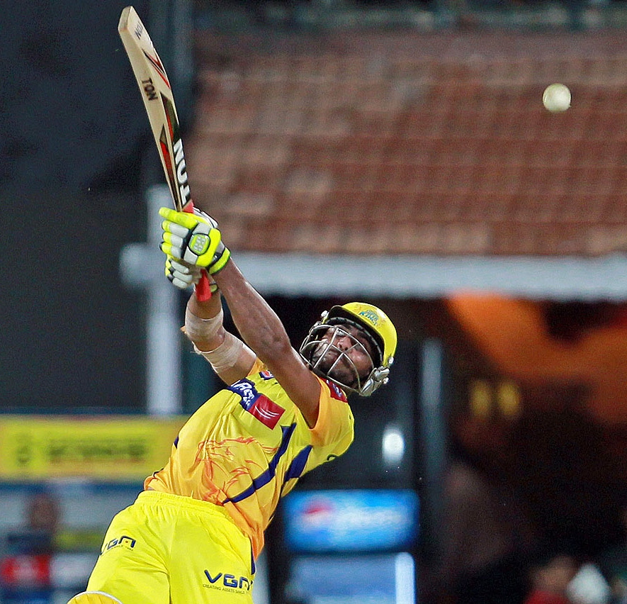 Chennai Super Kings was pushed back in the opening overs since they lost their openers, Michael Hussey and Murali Vijay, at 10 in 4 overs. Suresh Raina and Subramaniam Badrinath joined together and Raina opted to attack while dispatching 4 fours in the next couple of overs. Badrinath remained in the game by sending the ball out of the rope occasionally and the score was enhanced to 66 in 10.3 overs when Raina was caught by Murali Kartik off Syed Mohammad for 30 from 22 balls with 5 fours. MS Dhoni walked in next as Badrinath became the next victim after the addition of 12 runs to the total for 34 off 29 with 4 fours.