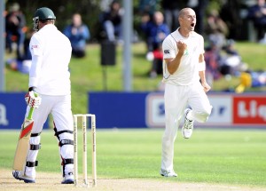 The 27th over of the innings was recorded as a wicket maiden and the match took a dramatic turn when martin got rid of the two prominent batsmen of the Proteas on the successive deliveries of his next over. Jacques Kallis was caught brilliantly by Taylor in the first slip on the first ball of the 29th over without opening his account. AB de Villiers faced the same fate when he was adjudged lbw on the very next ball as Amla kept wondering at the other end.