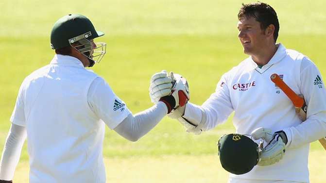 South Africa started their second innings with a deficit and they started off reasonably well by contributing 45 runs for the first wicket. Alviro Petersen lost his wicket for 25 when he was caught at mid off by Tim Southee on the bowling of Doug Bracewell in the 12th over.
