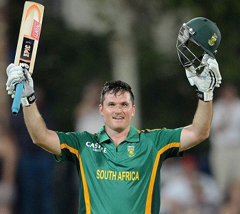 The duo accumulated a score of 122 in 26.1 overs as Ingram lost his wicket for 25 and the South African captain, Faf du Plessis, took guard at the crease. The run rate was picked up by the batsmen and the boundaries were being dispatched at regular intervals. Faf du Plessis was caught at midwicket by Martin Guptill off Kyle Mills for 19 as the total touched 165. Smith came to be a lone fighter after that as the rival bowlers became unplayable and the batsmen from the other end kept on surrendering.
