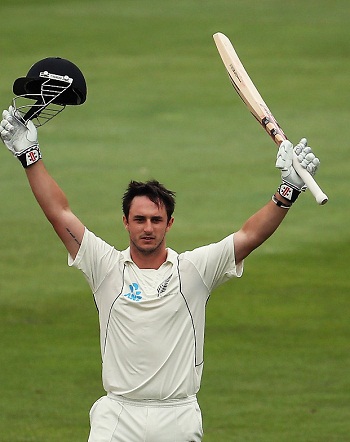 Hamish Rutherford thrashed his maiden Test hundred on debut with a four on the third ball of the 52nd over as the newcomer Kane Williamson kept on securing his end. The first was playing his brave knock as the latter scored just 6 runs off the first 41 balls he faced and tasted his first four in the 64th over. Rutherford added 14 runs in the next over with 3 fours as the hosts went past the 200 runs mark as well. The partnership kept on flourishing as Rutherford punished Monty Panesar for 15 runs in the 72nd over with 2 lofty sixes. The second wicket fell at 249 as Kane Williamson was clean bowled by Panesar for 24 and was replaced by Ross Taylor. Hamish Rutherford became the next victim after the addition of 18 runs to the total after powering 171 off 217 deliveries with 3 huge sixes and 22 fours.