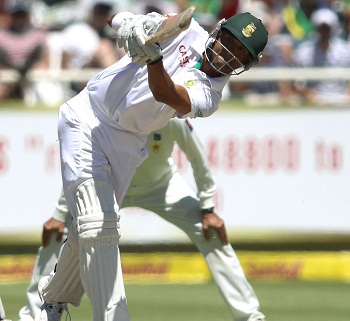 Earlier, the Proteas started the day at 5-139 after 60 overs whereas AB de Villiers and Dean Elgar were unbeaten for 24 and 11 runs respectively. The batsmen added one run in the first two overs as de Villiers hit the first four of the day in the next over. Elgar hit a couple of fours in the following overs as de Villiers was dropped at 37 by Azhar Ali at gully off Umar Gul on the third ball of the 69th over. Dean Elgar was smartly caught by Younis Khan in the first slip off Saeed Ajmal for 23 in the next over and he was replaced by Robin Peterson.