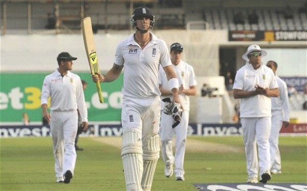 England 1st innings 425 (Kevin Pietersen 149, Matt Prior 68, Imran Tahir 3-92) 2nd innings 4-130 (Alastair Cook 46, Janathan Trott 30*, Jean-Paul-Duminy 1-10) drew with South Africa 1st innings 419 (Alviro Petersen 182, Graeme Smith 52, Stuart Broad 3-96) 2nd innings 9-258 declared (Jacques Rudolph 69, Smith 52, Broad 5-69)