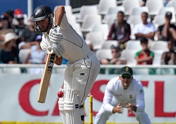 The Kiwis faced another setback when their prominent opener, Martin Guptill lost his wicket without a run on board. Kane Williamson joined in with Brendon McCullum as they found it hard to post runs on board swiftly and got just six runs in the first six overs. Williamson hit 2 fours in the next couple of overs as McCullum secured his wicket at the other side. The pair crept to 29 in 17.4 overs when Kane Williamson was caught in the second slip by Alviro Petersen off Jacques Kallis for 15. The young Dean Brownlie joined in next with McCullum who scored his first four on the 57th delivery he faced. Brownlie preferred to play his shots by sending the ball out of the fence thrice off Vernon Philander in the 20th over.