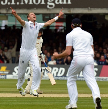 Stuart Broad (England) was declared ‘Player of the match’ for his career’s best bowling spell of 7-44 in an innings