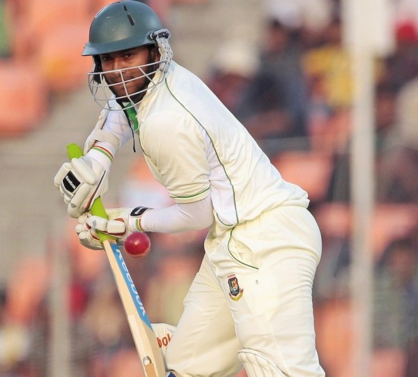 Bangladesh 1st innings 387 (Abul Hasan 113, Mahmudullah 76, Fidel Edwards 6-90) 2nd innings 6-226 (Shakib Al Hasan 97, Nasir Hossain 64, Tino Best 3-26) trail West Indies 1st innings 9-648 declared (Marlon Samuels 260, Shivnarine Chanderpaul 150*, Darren Bravo, 127, Shakib Al Hasan 4-151) by 35 runs.