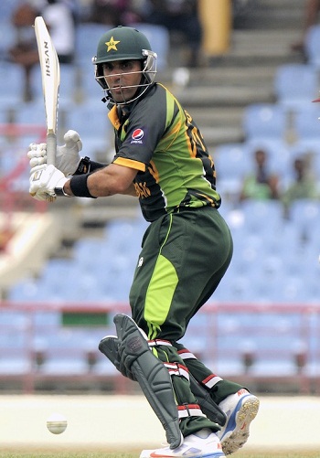 Earlier, Dwayne Bravo, the captain of West Indies, won the toss and invited Pakistan to bat first. The regular opening pair of the visitors, Ahmed Shehzad along with Nasir Jamshed, started the innings slowly by scoring 23 runs in 10 overs with 3 fours. The partnership was broken at 39 when the first was gone for 17 and Nasir Jamshed departed at the same total for 20. Mohammad Hafeez and his skipper Misbah-ul-Haq tried to consolidate the innings and crawled to 70 after 23 overs when the latter hit the first six of the match in the next one.