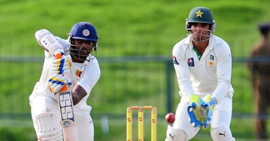 Tharanga Paranavitana became the sixth victim at 204 runs at his personal feat of 75 and the seventh wicket fell at 236. Pakistan looked like getting back into the game when Thisara Perera and Nuwan Kulasekara joined together at the crease. Perera was dropped by Umar Gul at his own bowling for 11 on the fifth ball of the 81st over. He got another chance as Misbah-Ul-Haq let him off in the first slip off the Umar Gul in the 85th over for 22. Pakistan suffered because of their poor ground fielding and both batsmen opted to attack. Perera clinched 15 runs off the 89th over off Umar Gul with the assistance of one six and a couple of fours. He achieved his fifty in the 93rd over as Kulasekara added useful runs from the other end.