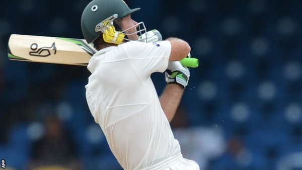 Australia thrashed 328 runs while batting first after Michael Clarke decided to bat after winning the toss. West Indies were bowled out for 218 runs and the visitors have scored 200 runs for the loss of six wickets in their second innings.