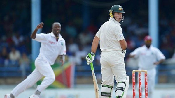 The fourth wicket fell at 93 and two runs later, Clarke was caught and bowled by Darren Sammy for 15 as Michael Hussey and Matthew Wade tries to gather the innings. The batsmen found it hard to score the runs and accumulated just 13 runs from over no.41 to 50. They enhanced the score to 145 when Hussey was clean bowled by Roach for 24 runs on the third ball of the 59th over. Wade remained unbeaten for 31 runs as the 8th wicket fell at 160 runs and Clarke made a brave declaration. West Indies were given a task of chasing 215 runs in the possible 59 overs and an exhilarating finish was on the way.